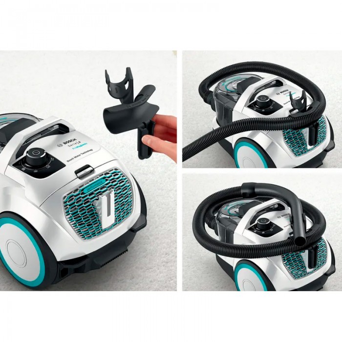 O Aspirador sem Saco da BOSCH é Super-compacto: fácil arrumação e operação graças ao design super leve e compacto.