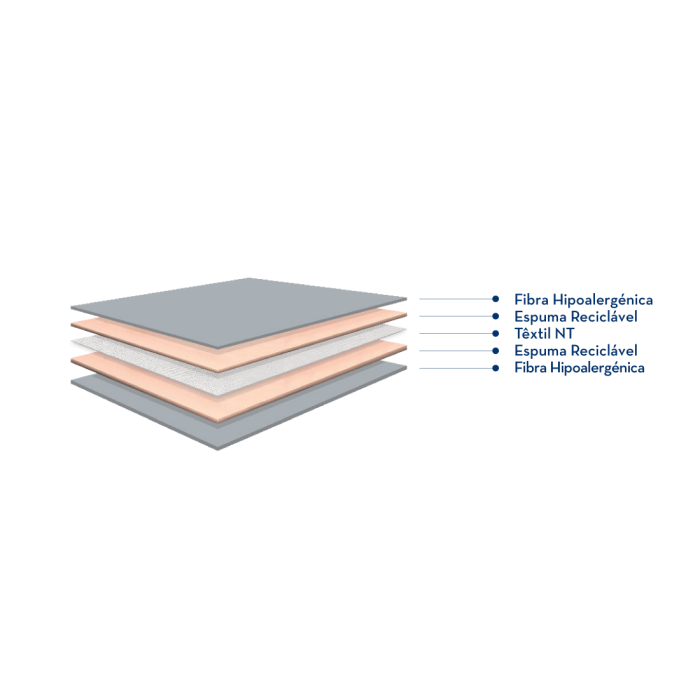 Tecido exterior: Stretch hipoalergénico com certificado Oeko-Tex, com debrum personalizado Molaflex e tratamento ignífugo.